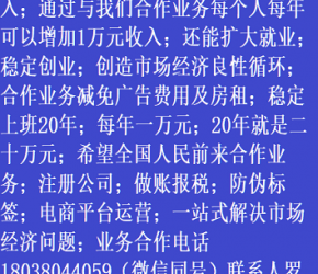 人進(jìn)寶城全國(guó)招商;合作業(yè)務(wù)減免廣告費(fèi)用;歡迎全國(guó)涉稅企業(yè)前來(lái)合作;業(yè)務(wù)合作電話 18038044059 聯(lián)系人羅廷剛